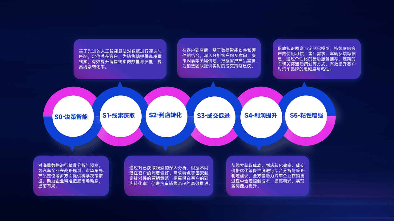 通过拓宽潜在客户来源、、、优化线索分配并提高到店转化率,,,,以增强销售效率。。。同时,,,利用线索数据不断优化分析模型,,,有效提升转化率,,,,扩大营销影响力。。